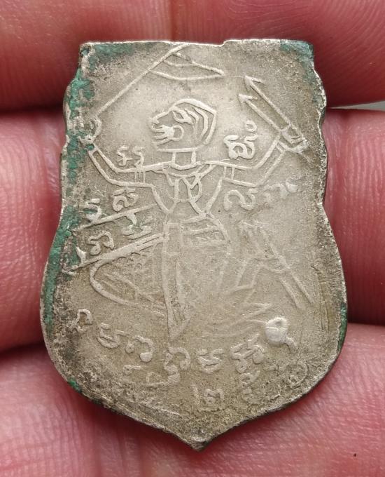 เหรียญเนื้ออัลปาก้าหูเหรียญถูกตัดเลี่ยมทองเปิดหน้าหลัง สภาพผ่านการห้อยบูชามาครับ
