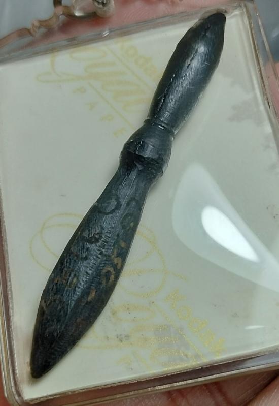 รูปถ่ายพระเกจิอาจารย์ไม่ทราบที่ ด้านหลังมีพระขรรค์ พร้อมรอยจาร พระบ้านเหมามา สภาพสวยเดิม เคาะเดียวแดง 100 บาท |