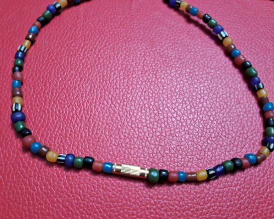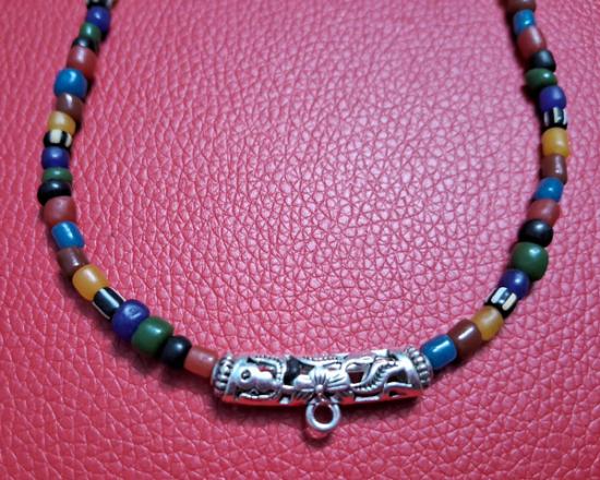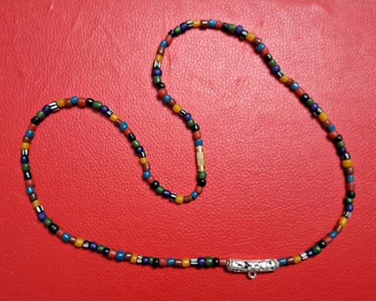 สร้อยคอลูกปัดทราวดี ลูกปัดโบราณสวยๆ ความยาว 24 นิ้ว สวมหัวได้หรือหมุนเกลียวทองเหลืองถอดออกก็ได้ สามารถห้อยพระได้ 1 องค์ (กท.19) |