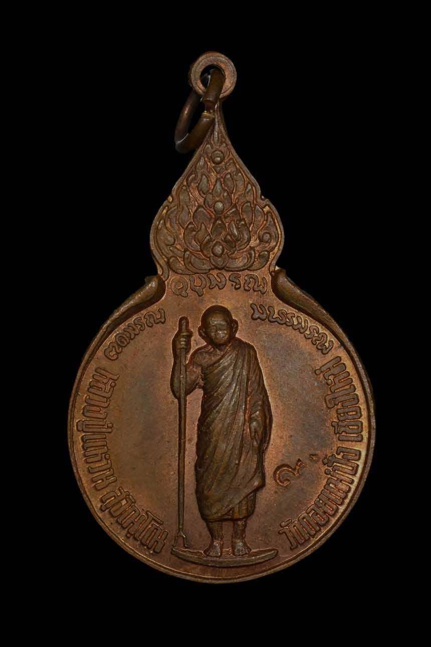 เหรียญยืนถือไม้เท้า รุ่นรวมใจ ( 5 แชะ )หลวงปู่แหวน วัดดอยแม่ปั๋ง จ.เชียงใหม่ ปี 2518( 5 แชะ)