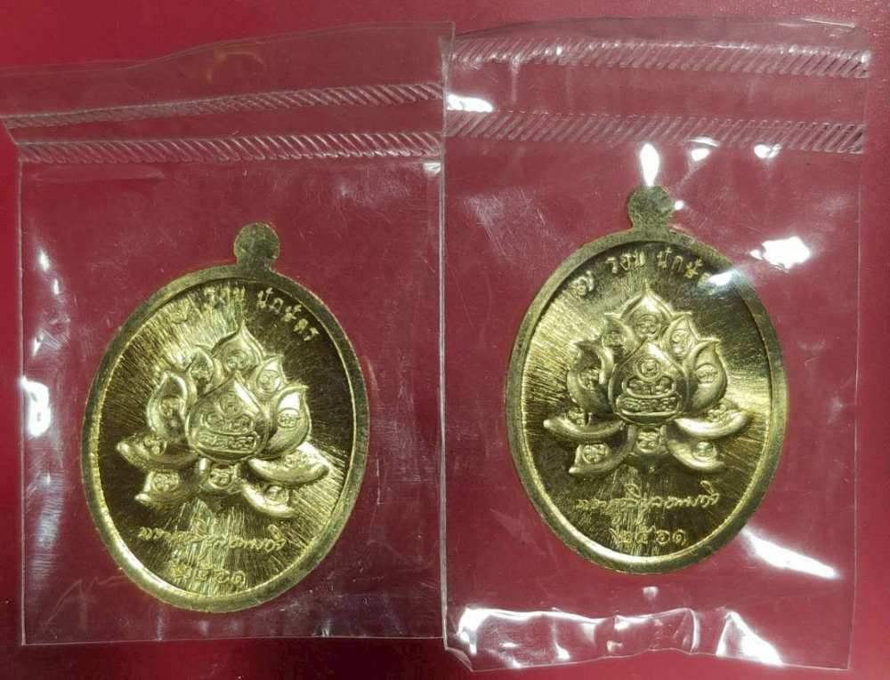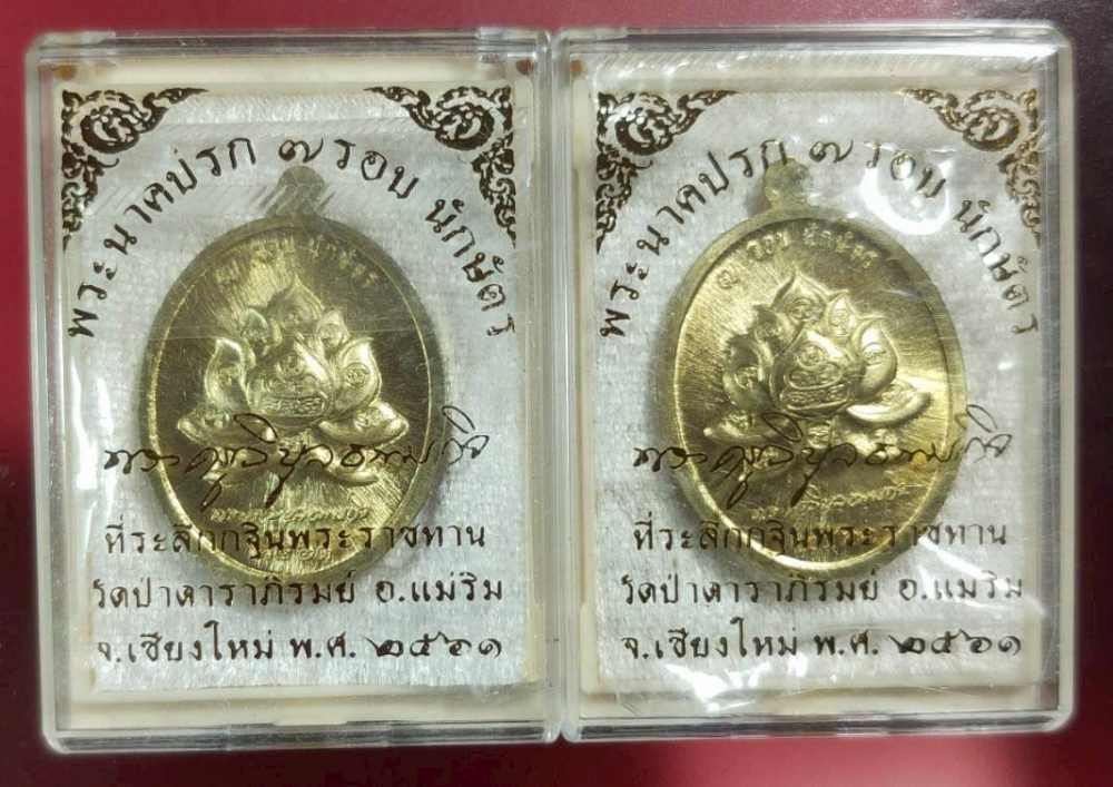 พระนาคปรก 7 รอบนักษัตร หลวงปู่บัวเกตุ ปทุมสิโร เนื้อทองฝาบาตร จำนวน 2 เหรียญ