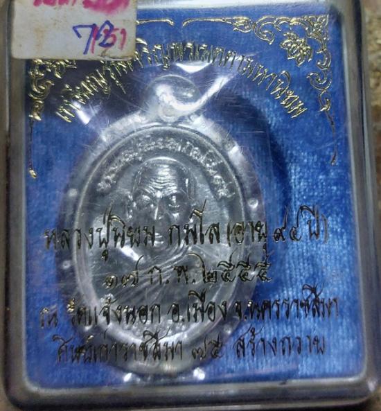 เหรียญเจริญพรเมตตามหานิยม หลวงปู่นิยม กมโล เนื้อเงินไม่ตัดปีก หลังยันต์ ๙รอบ กรรมการ no ๗๒ วัดแจ้งนอก ปี 2555 |