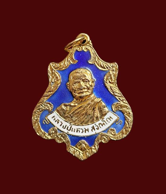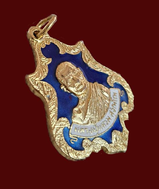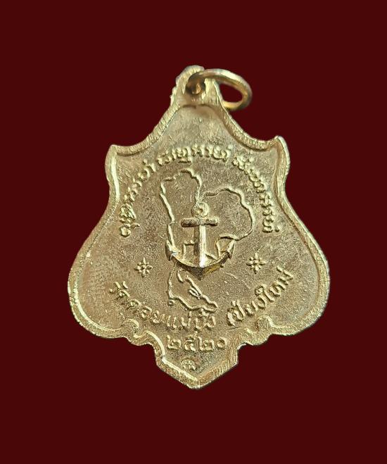 เหรียญรูปอาร์มรุ่นทหารเรือ หลวงปู่แหวน สุจิณฺโณ วัดดอยแม่ปั๋ง จังหวัดเชียงใหม่ ปี 2520 เนื้อทองแดงกะไหล่ทองลงยาสีน้ำเงิน ตอกโค๊ต สมอเรือ