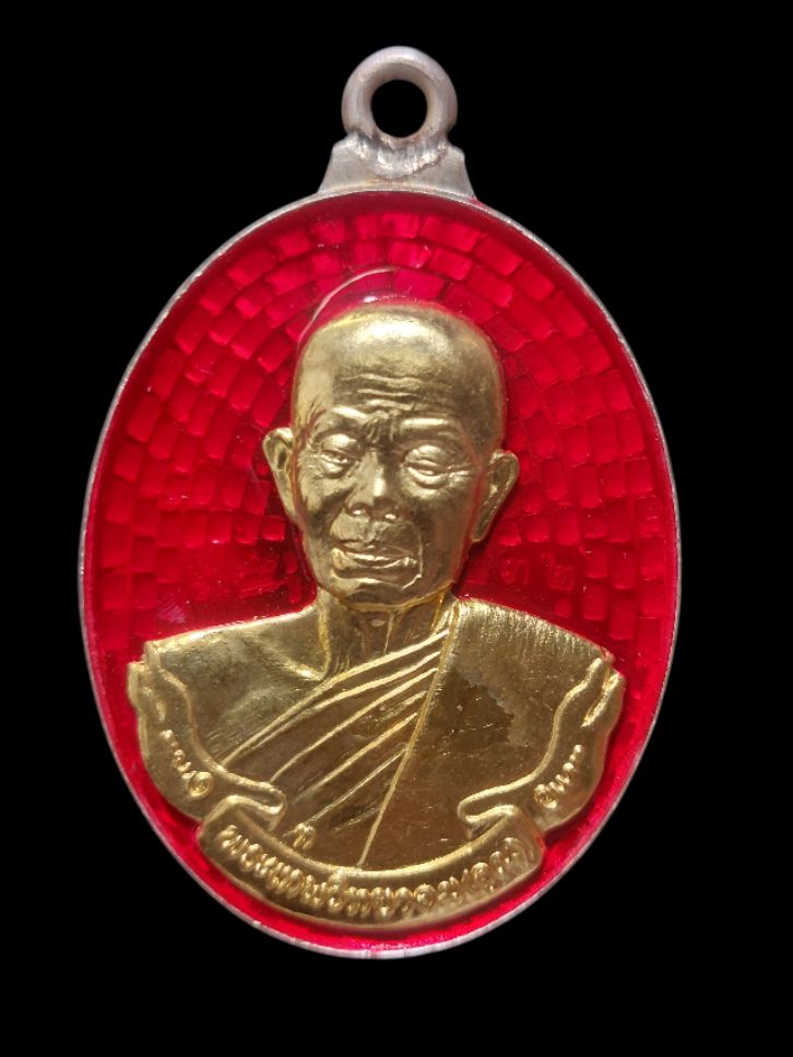 เหรียญห่วงเชื่อม หลวงพ่อคูณ ปริสุทโธ วัดบ้านไร่ เนื้อเงินลงยาหน้าทองคำ หมายเลข ๓๒ เคาะเดียวแบ่งปัน