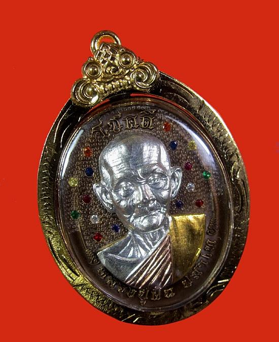 - เหรียญ"โชคดี" หลวงปู่ฝั้น ปสาโท วัดศรีถมอรัตนฺ์ (วัดหน้าผา) จ.เพชรบูรณ์ "" เนื้อนวะฝังพลอยหลากสี หน้ากาก หน้า-หลัง เลี่ยมกรอบ เลข ๕๒
