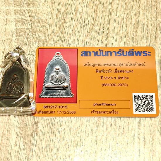 เหรียญระฆัง หลวงพ่อเกษม เขมโก สุสานไตรลักษณ์ปี 2516 พร้อมบัตรรับรอง เลื่อมเลนส์เหลี่ยมเพชร