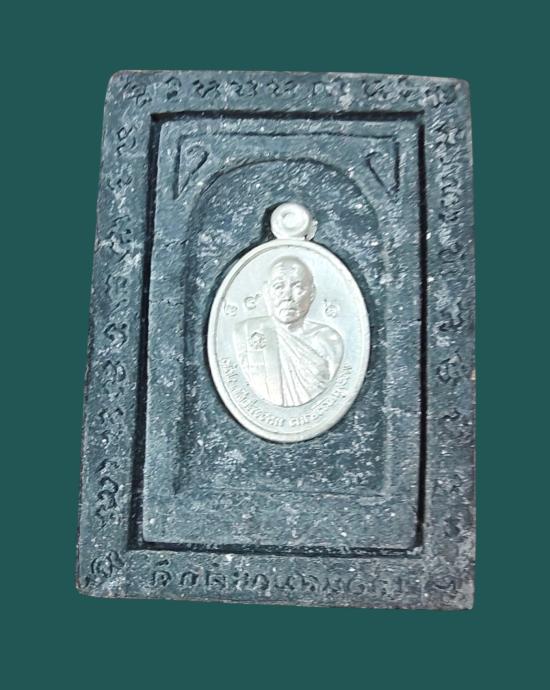 พระผงรูปเหมือนรุ่นเลื่อนสมณศักดิ์หลวงพ่อตัดวัดชายนาด้านหลังฝังเหรียญเม็ดแตง