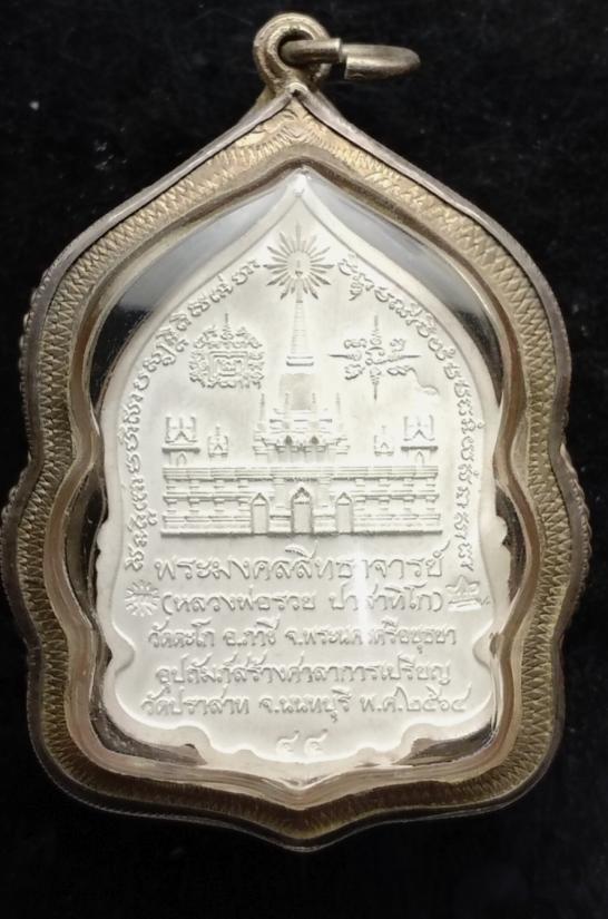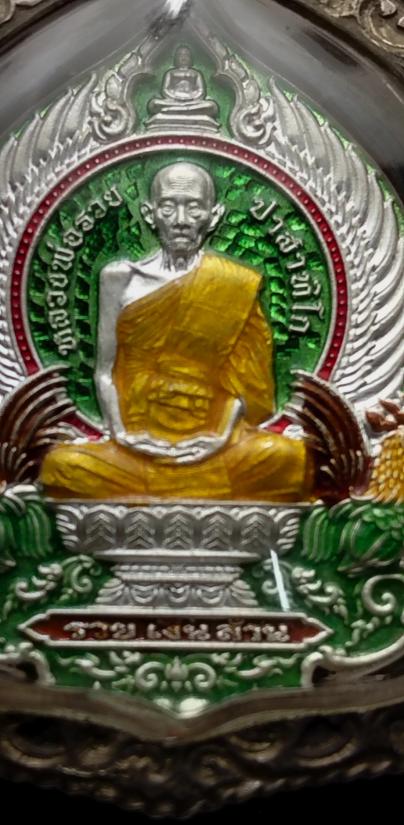 เหรียญหลวงพ่อรวย รุ่นรวยเงินล้าน สร้างที่วัดปราสาท นนทบุรี เนื้อเงินลงยาร้อนสีเขียว มีโค๊ด+เลข2หลัก44 เลขสวยครับ พร้อมเลี่ยมเงินปี2564