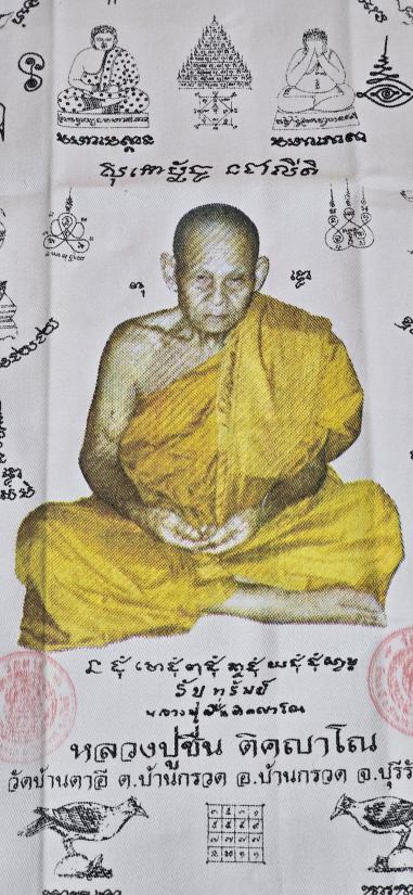 ผ้ายันต์หลวงปู่ชื่น วัดตาอี จ.บุรีรัมย์ ปี2545 ผืนใหญ่ 55 x 75 ซ.ม. หายาก หมายเลข 352 ครับ
