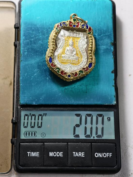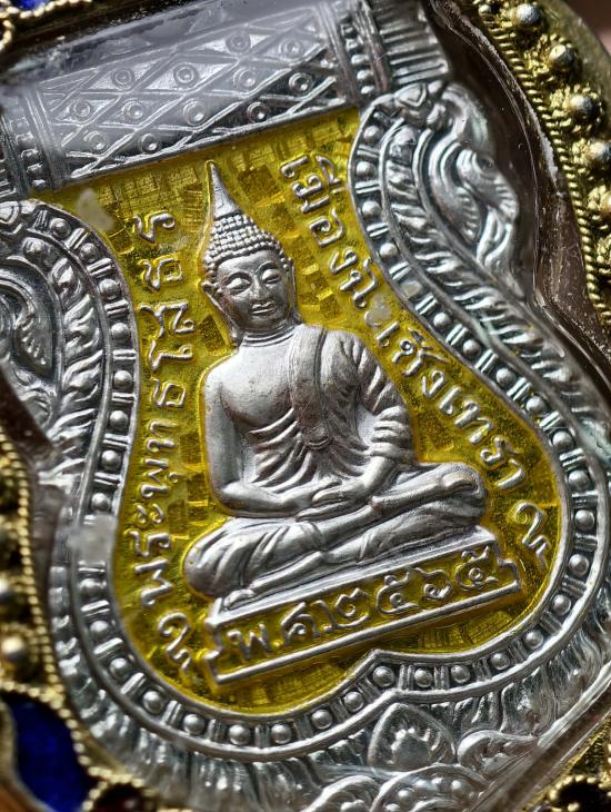 50.-/// เหรียญหลวงพ่อโสธร เนื้อเงินลงยา ปี 65 เลี่ยมกรอบเงินชุบทองลงยา น้ำหนักรวม 20 กรัม