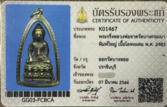 พระกริ่งหลวงพ่อจาด วัดบางกระเบา จ.ปราจีนบุรี พิมพ์ใหญ่ ปี 2483 เนื้อโลหะ กริ่งดังปกติดี พร้อมเลี่ยมทองอย่างดี พระดี พิธีใหญ่ มีเกจิชื่อดังแห่งยุคมากมายมาร่วมพิธีครับ พร้อมบัตรรับรองสมาคม 1 ใบ