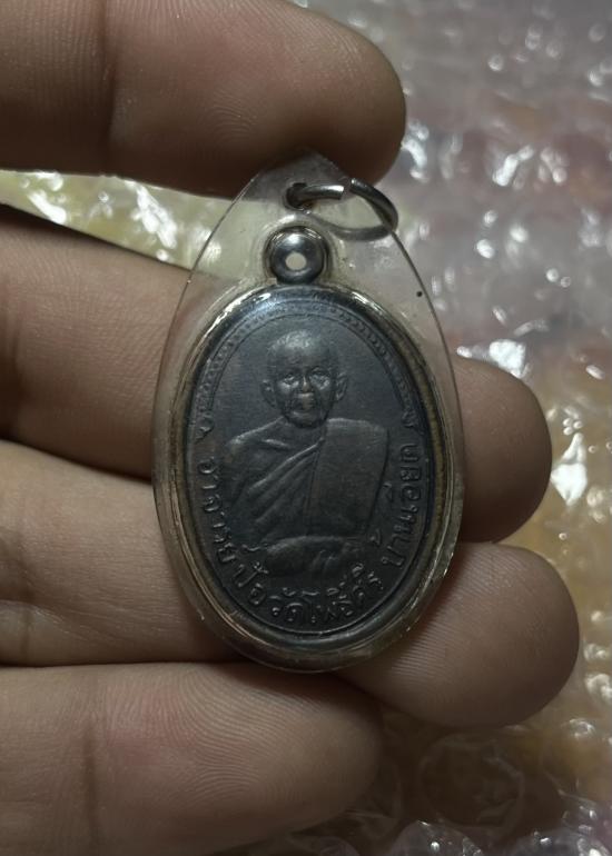 เหรียญอาจารย์ป้อ วัดโพธิ์ศรี บ้านเอียด จ.มหาสารคาม เลี่ยมกรอบเก่าเดิม |