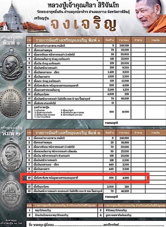 หลวงปู่มหาศิลา จงเจริญพิมพ์2 เนื้อโลหะพิเศษหลังอุดมวลสาร จมูกโด่ง เลข 339 กล่องเดิมราคาจอง4,999 บาท