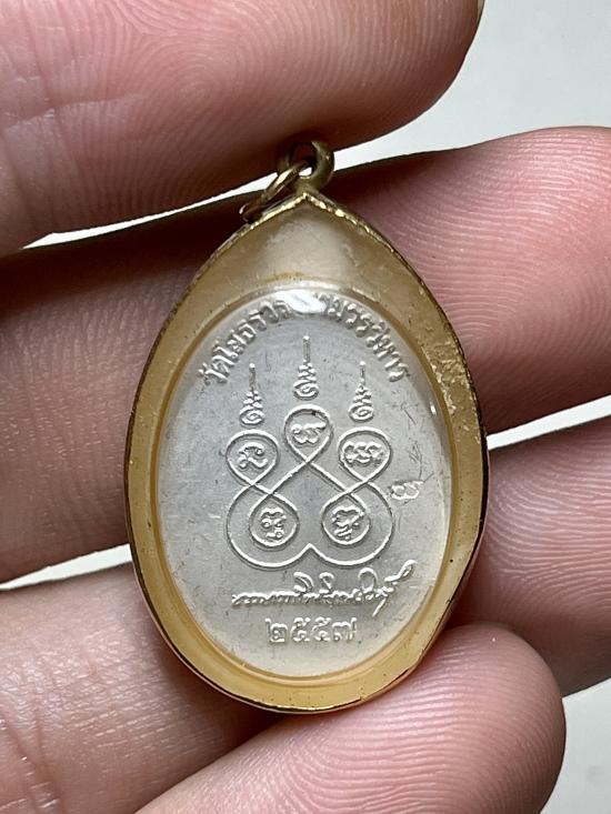 เหรียญรูปไข่หลวงพ่อโสธร เนื้อเงินลงยาสีแดง ปี 2557 พร้อมเลี่ยมทองเเท้ #ไม่มีเเผ่นหลัง