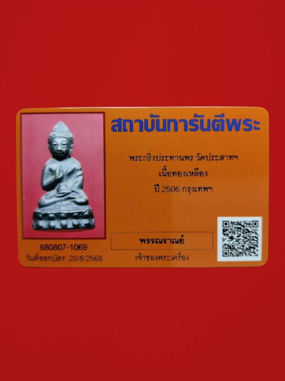พระกริ่งประทานพร วัดประสาทฯ ปี 2506 มาพร้อมบัตรรับรองพระแท้ พึ่งออกมาใหม่ๆ สบายใจได้ค่ะ |