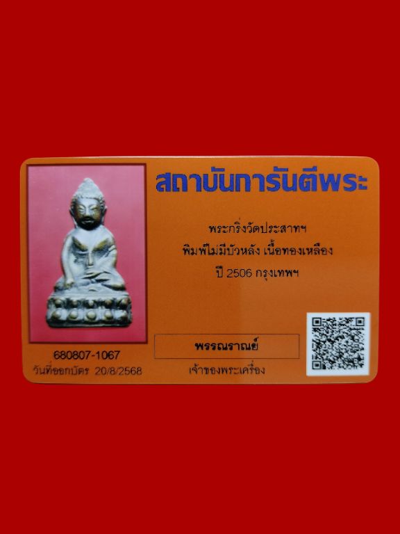 พระกริ่งวัดประสาท พิมพ์ไม่มีบัวหลัง ปี 2506 มาพร้อมบัตรรับรองพระแท้พึ่งออกมาใหม่ สบายใจได้ค่ะ |