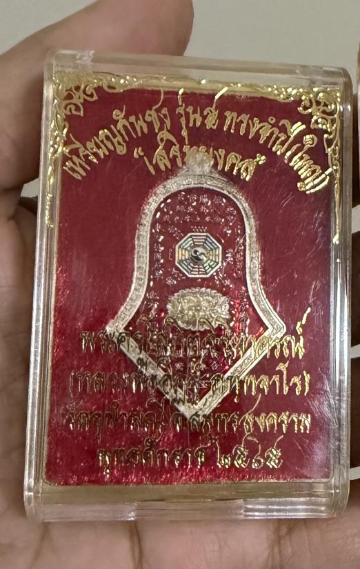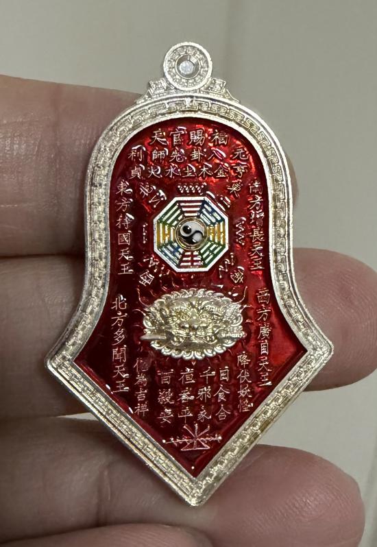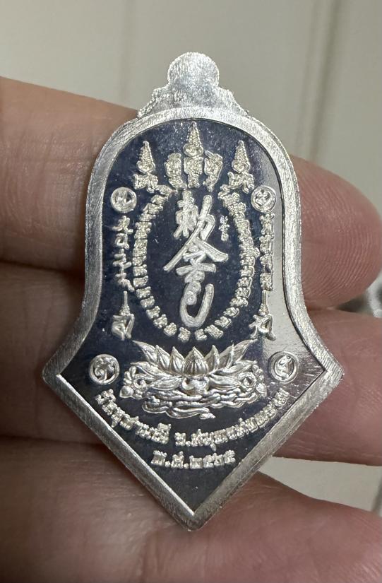 เหรียญกันชง พิมพ์ใหญ่ ปี 65 ทรงจำปี หลวงพ่ออิฏฐ์ วัดจุฬามณี จังหวัดสมุทรสงคราม เนื้อเงิน ลงยาแดง สวยเดิมๆ