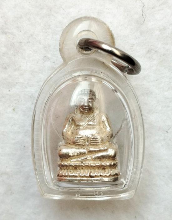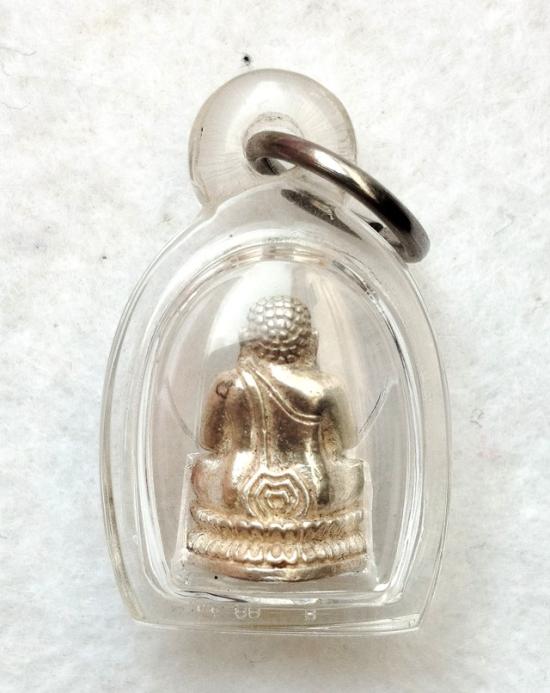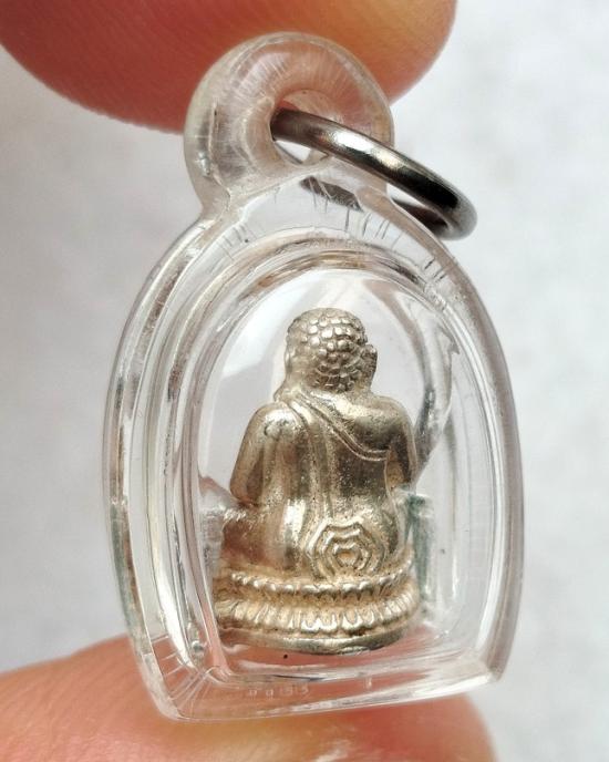 พระสังกัจจายน์เนื้อเงิน วัดบางพลีใหญ่ใน สมุทรปราการ พิมพ์เล็กมีกริ่ง ปี2531 พร้อมเลี่ยม |