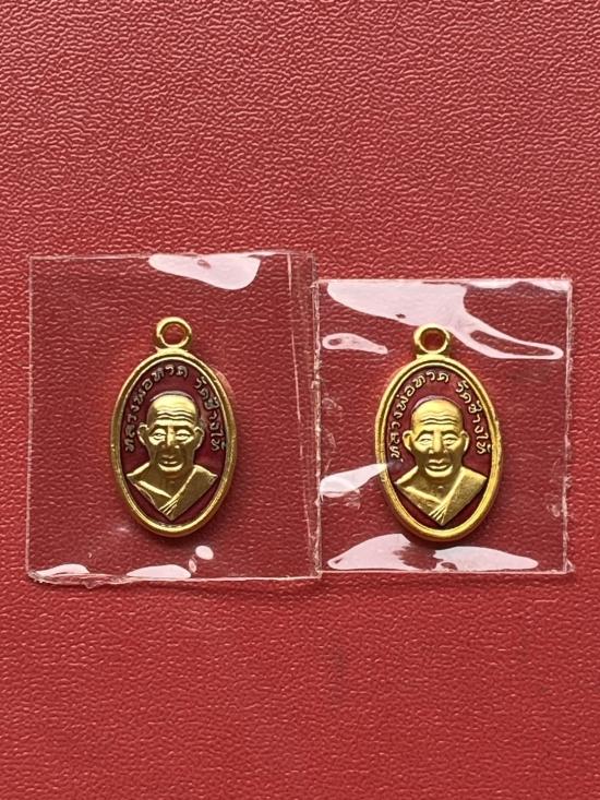 เคาะเดียวแดง เม็ดแตง 2องค์หลวงปู่ทวด รุ่น102ปีอาจารย์ทิม เนื้อชุบทองลงยาสีแดง |