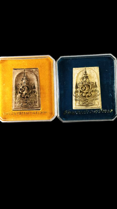 **100.** (2 องค์) พระสมเด็จพระพุทธชินสีห์ + พระสมเด็จเนื้อผง หลังภปร. วัดบวรนิเวศวิหาร หลังตราสัญลักษณ์พระราชพิธีมหามงคลเฉลิมพระชนมพรรษา 7 รอบ ในหลวงรัชกาลที่ 9 สร้างปี 2542