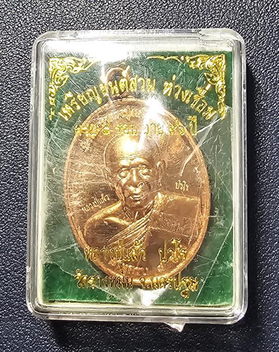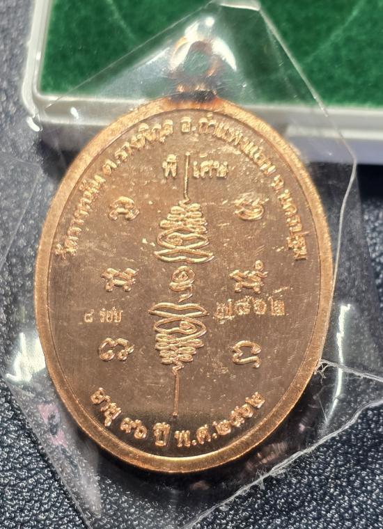 @เหรียญยันต์สวนห่วงเชื่อม ครบ 8 รอบ 96 ปี หลวงปู่แผ้ว ปวโร วัดรางหมัน ปี 2562 เนื้อทองแดง พร้อมกล่องเดิม