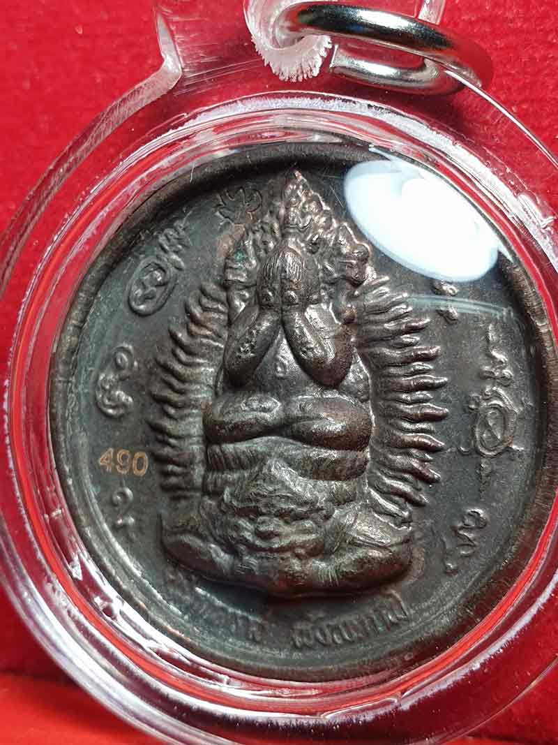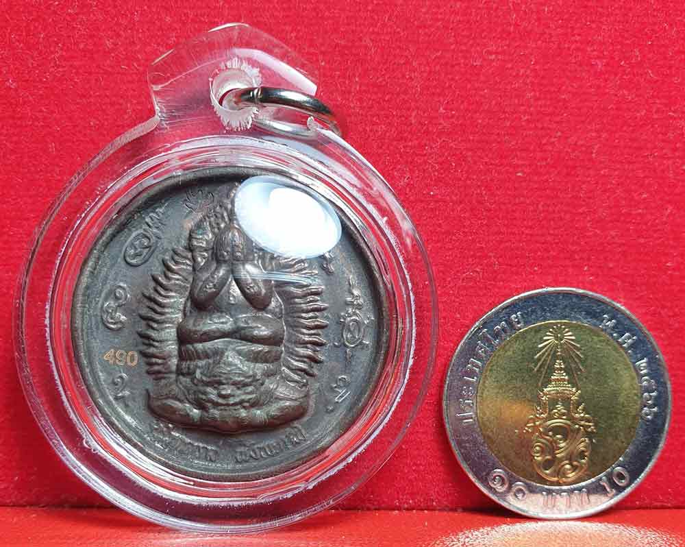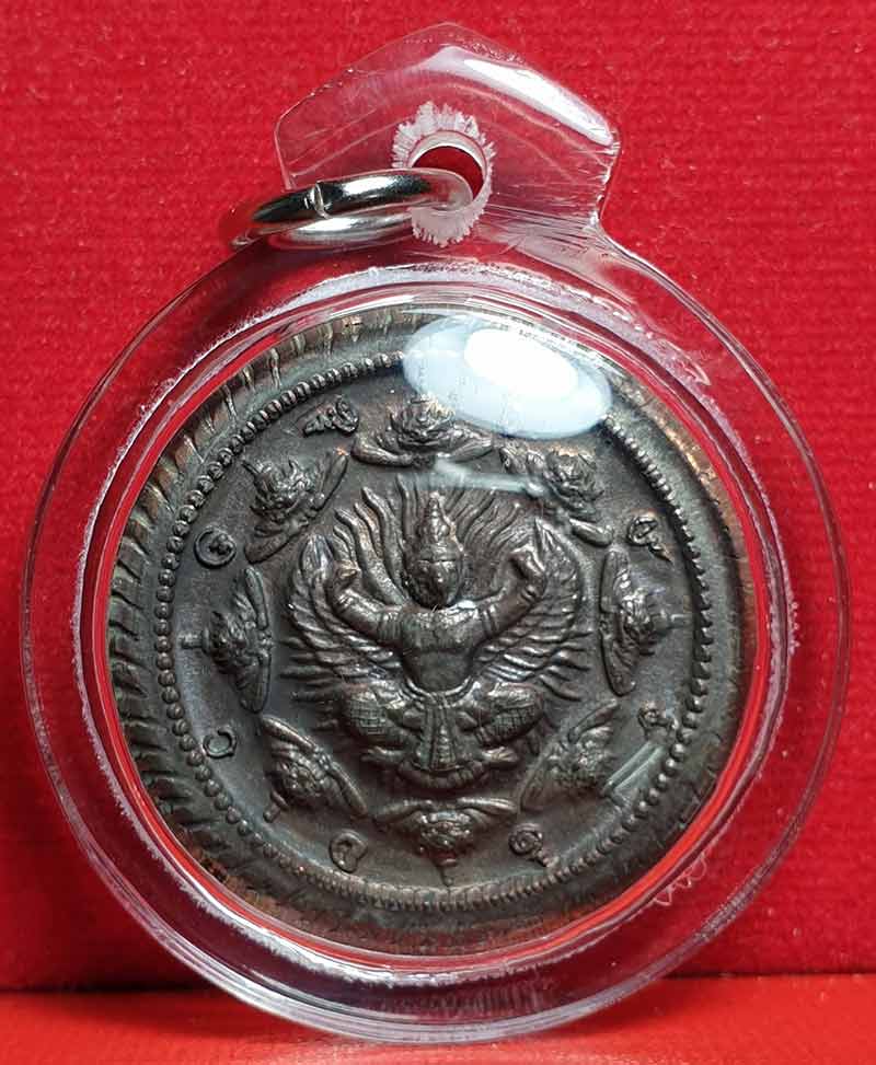 ด้านหลังเป็นพญาครุฑและพระราหู 8 ทิศ พิธีศักดิ์สิทธิ์...พิธียิ่งใหญ่ เนื้อนวะโลหะ ขนาด 3 ซ.ม. เลข 490