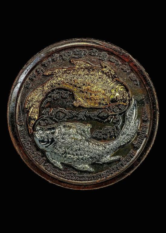 เหรียญ "รวย"เจริญ"ดี ท้าวเวสสุวรรณ มหาโภคทรัพย์ หลังปลาตะเพียนคู่ "เนื้อนวะโลหะหน้ากากเงิน |