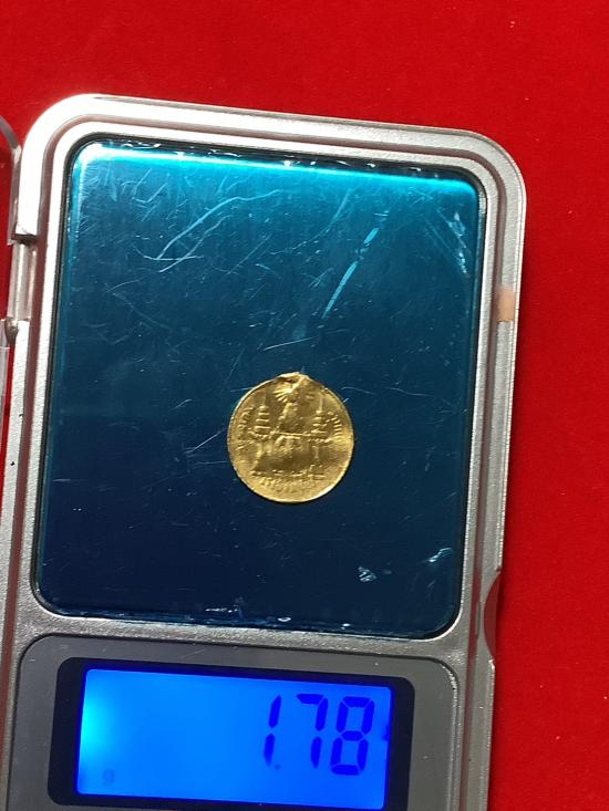 (เคาะเดียวแดง) เหรียญเฟื้องรัชกาลที่ 5 เนื้อทองคำ สภาพใช้สึก