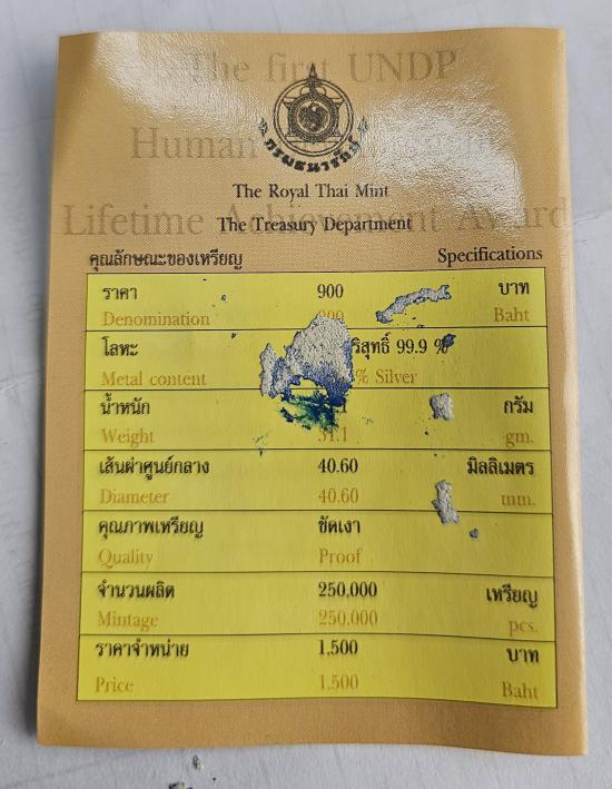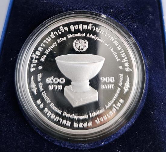 เหรียญเงิน 99.9% หนัก 31.1 กรัมในหลวงรัชกาลที่ 9 ราคาหน้าเหรียญ 900 บาท เนื้อเงินขัดเงา รางวัลความสำเร็จสูงสุดด้านการพัฒนามนุษย์ ปี 2549 สภาพสวยมากครับ