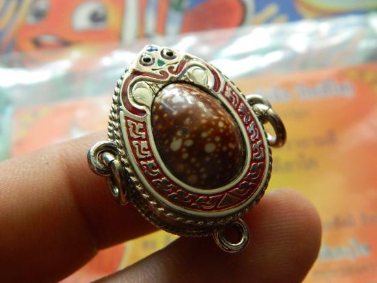 เบี้ยแก้รุ่นแรก พระมหาสุรศักดิ์ วัดประดู่ จ.สมุทรสงคราม เงินลงยา 3ห่วง **ลายมือสด**