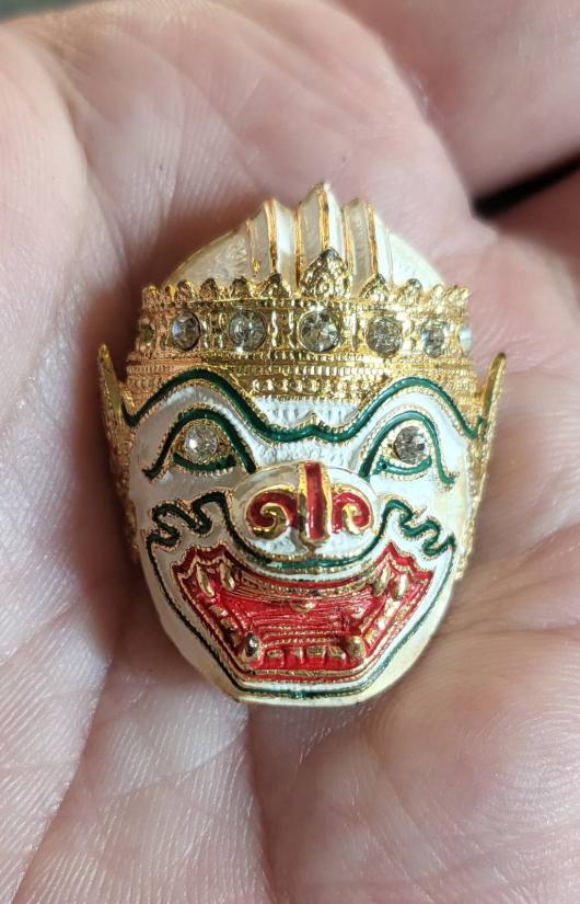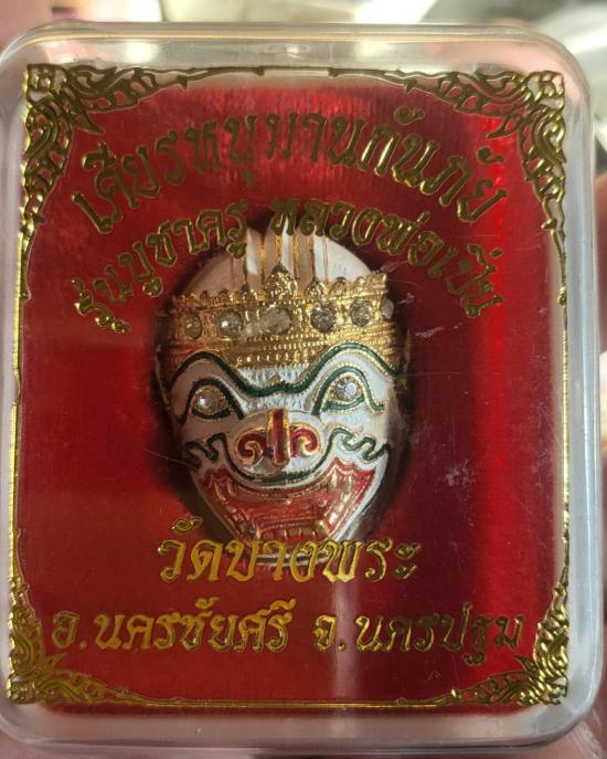 เศียรหนุมานกันภัย เนื้อโลหะเพ้นท์สี รุ่นบูชาครู หลวงพ่อเปิ่น วัดบางพระ จ.นครปฐม ปี53 |