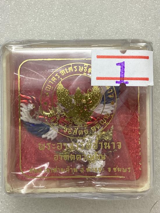 พญาครุฑทรงฤทธิ์แห่งอาณาจักรทะเลใต้ เศรษฐีมหาอำนาจ หลวงพ่ออำนาจ อาทิตฺตวณฺโณ สำนักสงฆ์เขาสามล้าน จ.ชุมพร เนื้อมหาชนวน ปราบไพรี ลงยากายแดง ปีกธงชาติ สูง 3.5 ซ.ม. ซีลเดิม ยังไม่ได้แกะ |