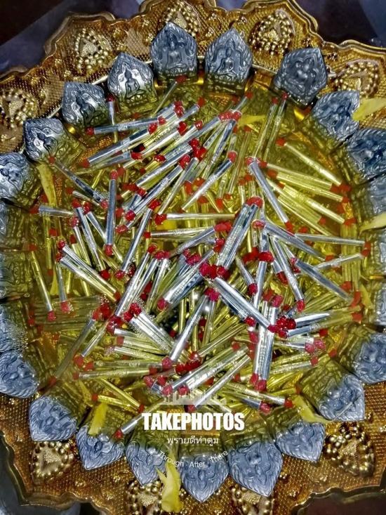 ตะกรุดสมฤดี เนื้อเงิน จารยันต์สาริกาป้อนเหยื่อ สร้างจำนวน 150 ดอก สอดตะกรุดด้วยเชือกอาถรรพ์ แช่น้ำมันพรายดอกทอง ปลุกเสกในคืนจันทร์ซ้อนจันทร์