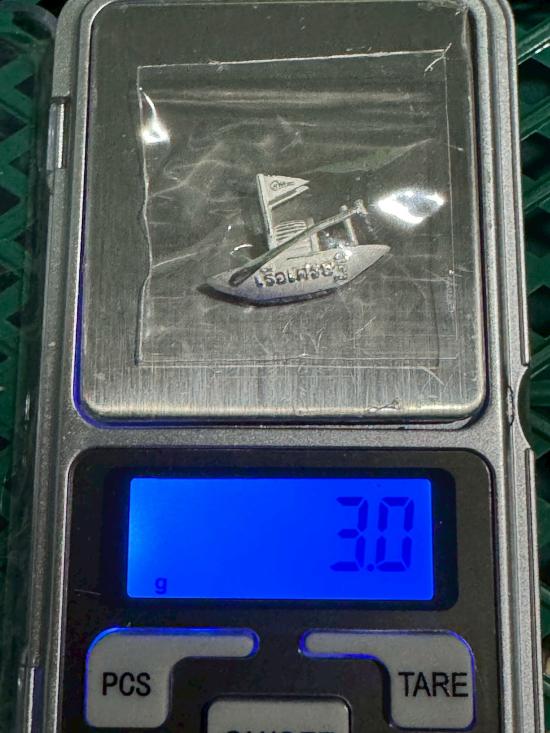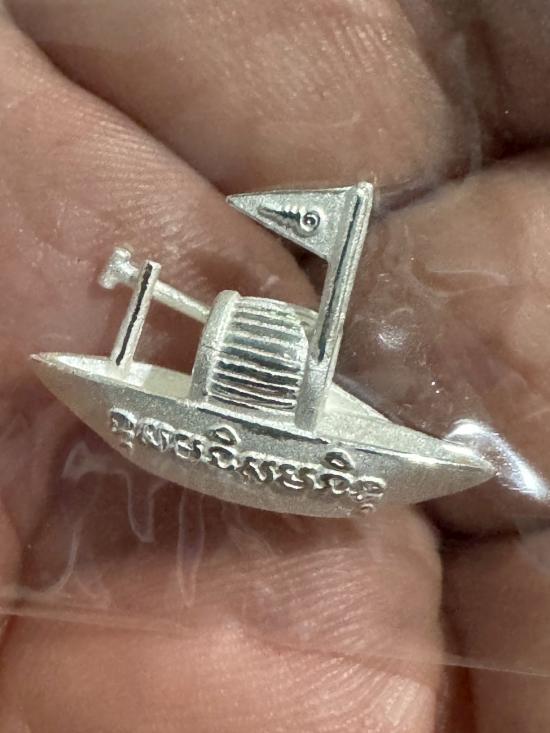 เรือเศรษฐีจิ๋ว รุ่น"บารมีหลวงปู่ทวด"(104 ปี อาจารย์ทิม) เนื้อเงินขัดเงา น้ำหนัก 3 กรัม ขนาด 2.5 x 1.5 ซ.ม. พิมพ์กลาง ตอกหมายเลข 184