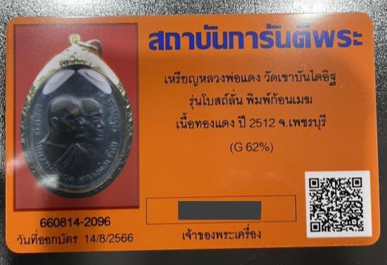 เหรียญหลวงพ่อแดง วัดเขาบันไดอิฐ โบสถ์ลั้น พิมพ์ก้อนเมฆ ทองแดง ปี2512 เลี่ยมทอง พร้อมบัตรรับรอง