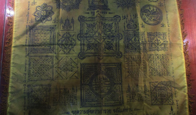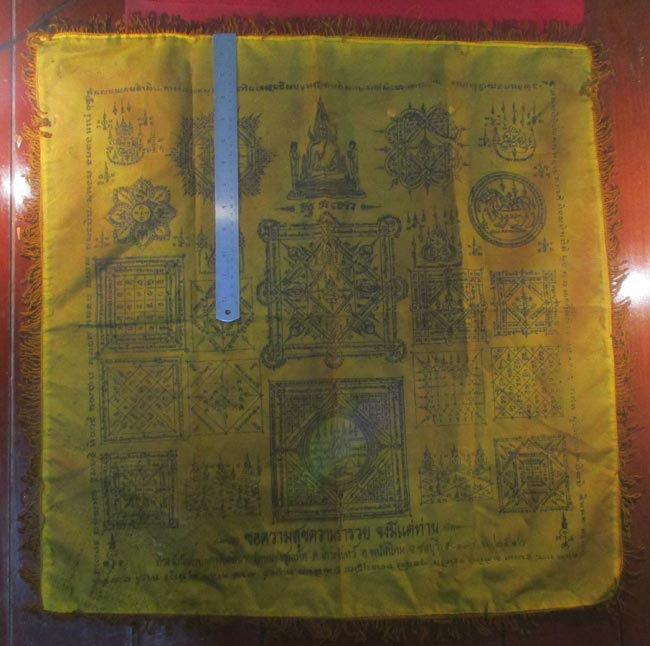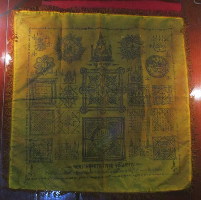 ผ้ายันต์ ที่ระลึกในงานผูกพัทธสีมา วัดหนองชุมเห็ด ต.เกาะจันทร์ อ.พนัสนิคม จ.ชลบุรี ๒๕๔๐ ครับ (พระบ้าน ครับ)