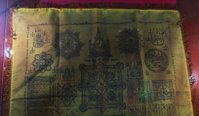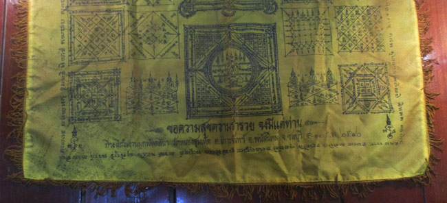 ผ้ายันต์ ที่ระลึกในงานผูกพัทธสีมา วัดหนองชุมเห็ด