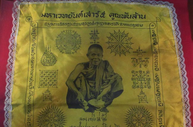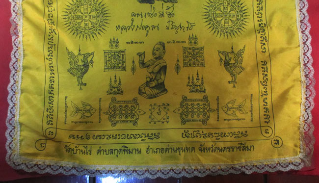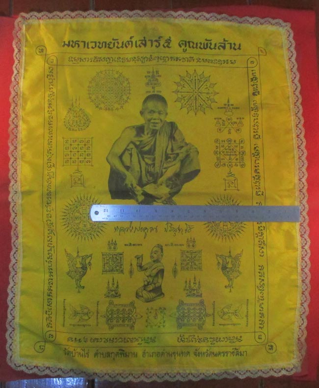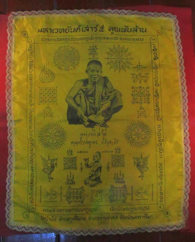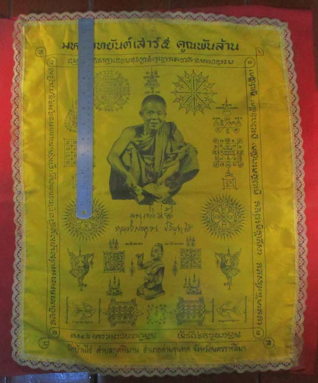 ผ้ายันต์ มหาเวทยันต์เสาร์ ๕ คูณพันล้าน วัดบ้านไร่ ต.กุดพิมาน อ.ด่านขุนทด จ.นครราชสีมา ครับ (พระบ้าน ครับ)