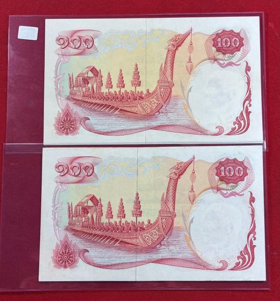ธนบัตร 100บาท รัชกาลที่9 แบบ10 เรือสุพรรณหงส์ จำนวน 2 ใบ สภาพสวยตามรูป