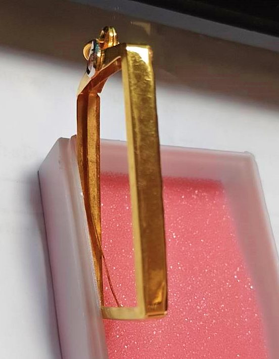 กรอบทองคำแท้ มือสอง ฝังเพชร CZ สำหรับพระทรงสี่เหลี่ยมคณาจารย์ทั่วไป ,พระสมเด็จ น้ำหนักรวม 3.4 กรัม G 70% ขอบนอก 3.3 x 4.4 cm ขอบใน 2.8 x 3.9 cm ขอบหนา 0.4 cm พร้อมบัตรจีครับ