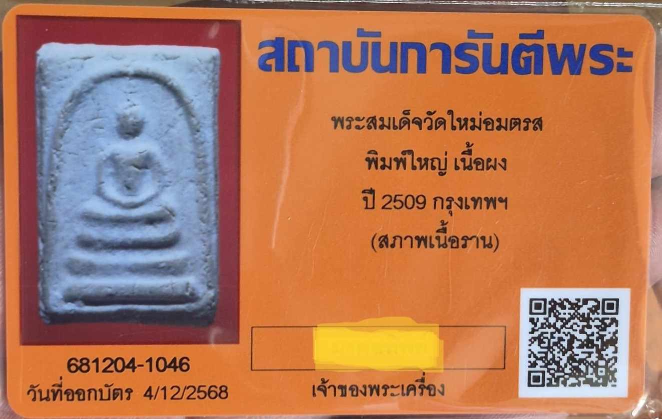 พระสมเด็จวัดใหม่อมตรส พิมพ์ใหญ่ เนื้อผง พร้อมบัตร