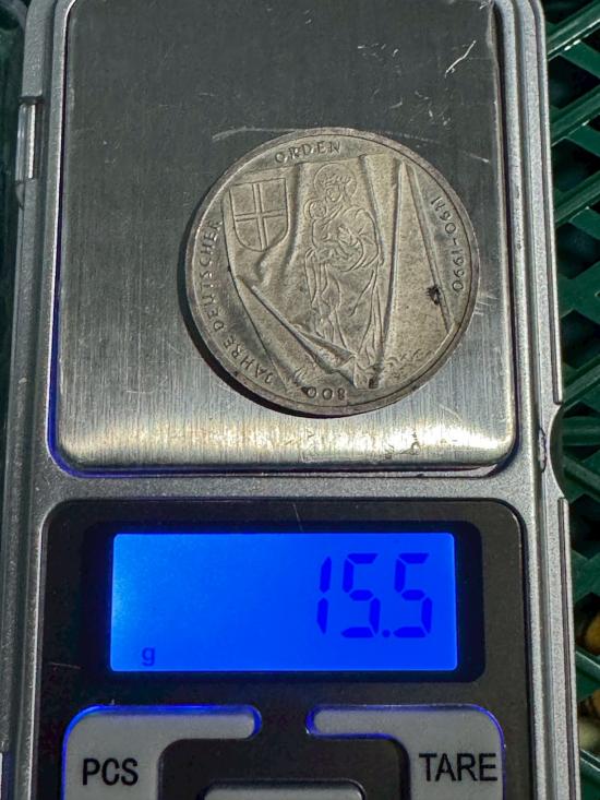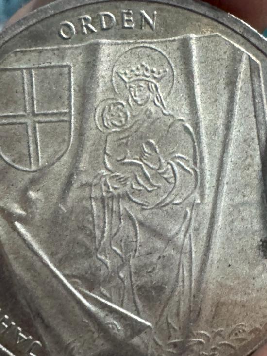 เหรียญเงินพระแม่มารี หลัง นกอินทรีย์ 800 JAHRE DEUTSCHER OREDN 1190 - 1990 เนื้อเงิน น้ำหนัก 15.5 กรัม