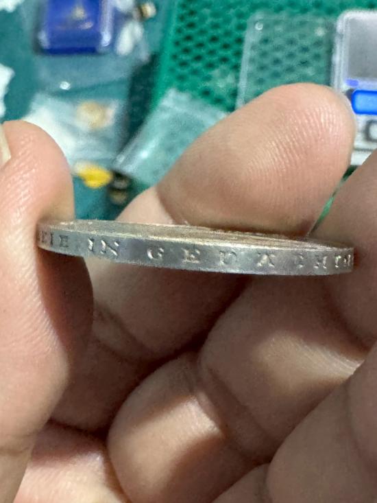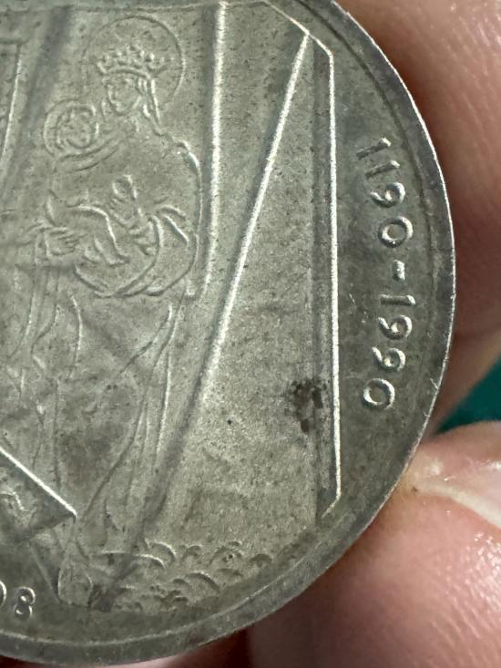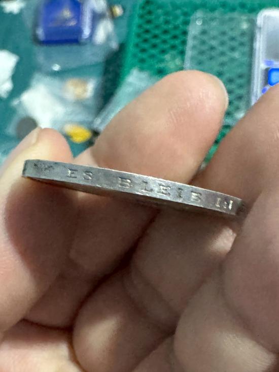 เหรียญเงิน พระแม่มารี น้ำหนัก 15.5 กรัม หลังอินทรีย์ มีข้อความ DEUTSCHE 10 MARK 1990 J BUNDESREPUBLIK DEUTSCHLAND ด้า่นขอบข้างเหรียญมีข้อความ ES BLEIB IN GEDACHINIS SO LANG GOTT WILL