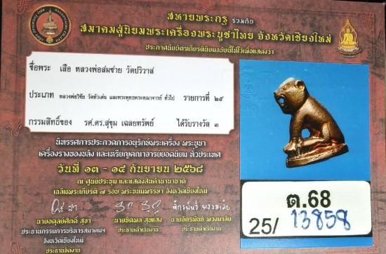 เสือหลวงพ่อสมชาย วัดปริวาส เนื้อทองแเดง