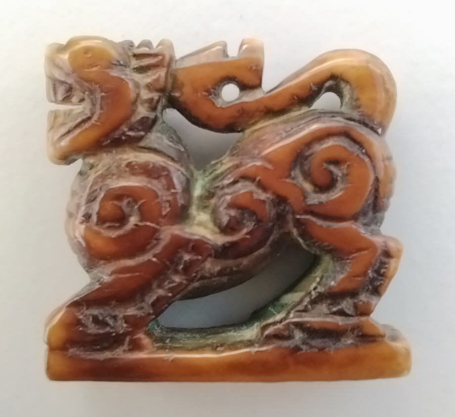 สิงห์งาแกะ งานสิ่วแกะมือทรงโบราณ ขนาด๒ซม. ผ่านการแช่สีผึ้ง ฐานจารยันต์ เนื้องาเก่าได้อายุ ไม่ทราบที่ สภาพเก่าเก็บ!