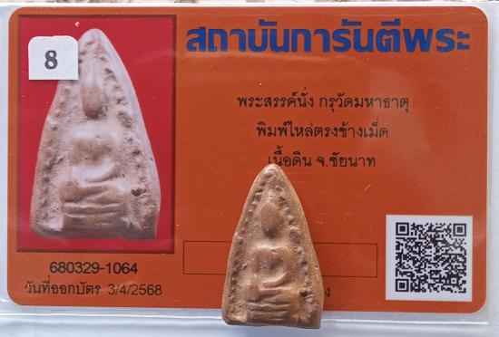 เคาะเดียวแดง++พระสรรค์นั่ง กรุวัดมหาธาตุ พิมพ์ไหล่ตรงข้างเม็ด เนื้อดิน จ.ชัยนาท พร้อมบัตรรับรองจากจีพระ