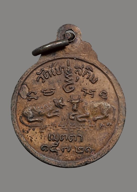 +++วัดใจ+++เหรียญเมตตาเสือวัว หลวงพ่อสมชาย วัดเขาสุกิม พิมพ์เล็ก ปี 2521 สภาพสวย ผิวเดิม |