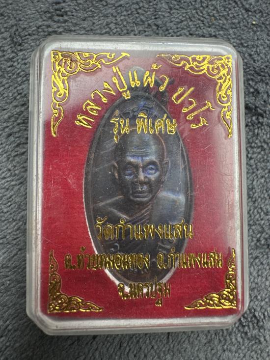 วัดใจ**หลวงปู่แผ้ว ปวโร ใบขี้เหล็ก วัดกำแพงแสน ปี 2557 เนื้อทองแดง