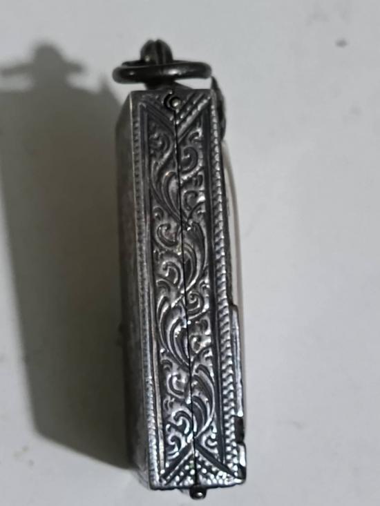 ตลับเงินแท้เก่า ปิดหลังแกะกนกเก่า.งานแกะมือ หัวสิงห์ใหญ่ ใส่พระสมเด็จหลวงปู่ภู วัดระฆัง.หนาหนัก 23.13 กรัม สมบูรณ์สนามใบละ 2,500 ราคาขายหลอมกรัมละ 88 เงินแพงมากต่อไปจะไม่มีขายแล้วอยู่โรงหลอมหมด