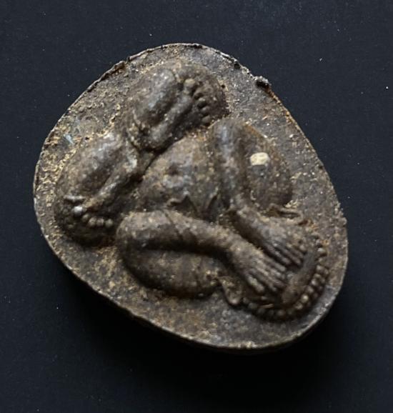พระปิดตายันต์ดวงเล็ก ปี2523 สมเด็จพระญาณสังวร (เจริญ) วัดบวรนิเวศ_(เนื้อผงใบลานโซนเข้ม_ตังอิ๊วประทุ)_